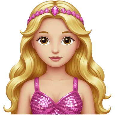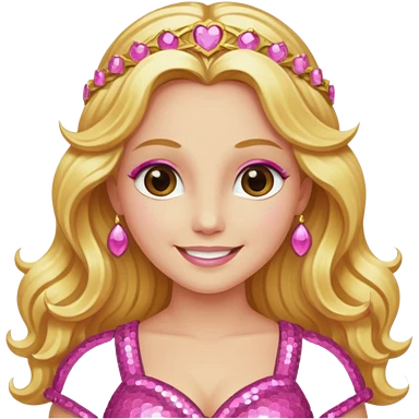 Venus, Goddess of Love from Gods and Goddesses with long golden blonde hair, pink sequin outfit emoji