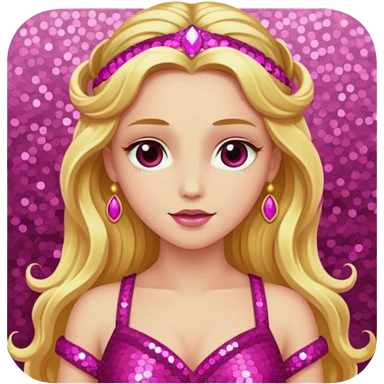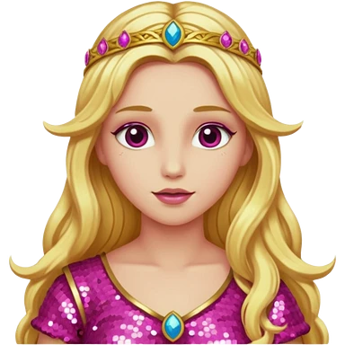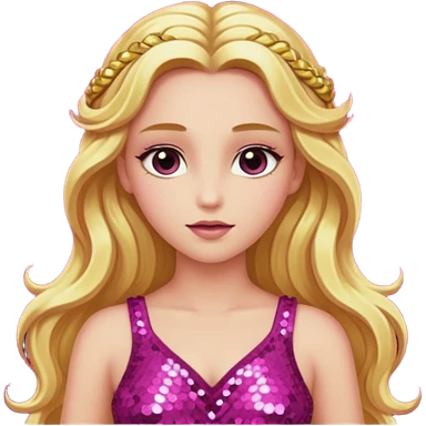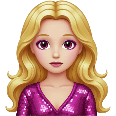 Venus, Goddess of Love with long golden blonde hair, pink sequin outfit emoji