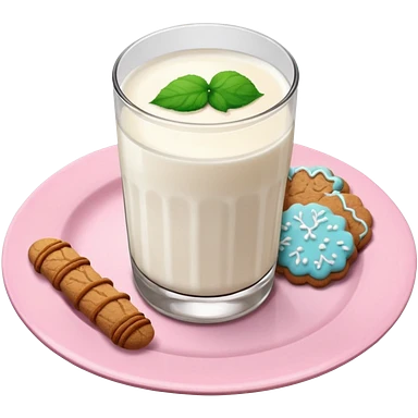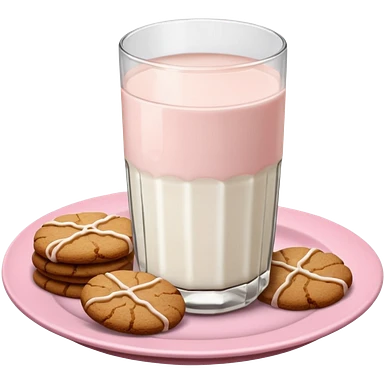 glass of milk, ginger cookies on a pink plate emoji