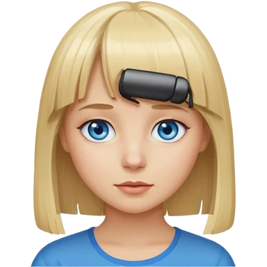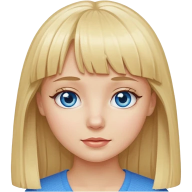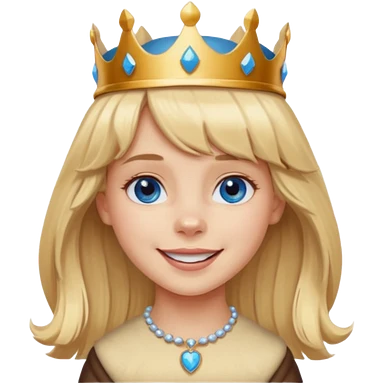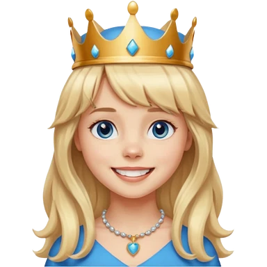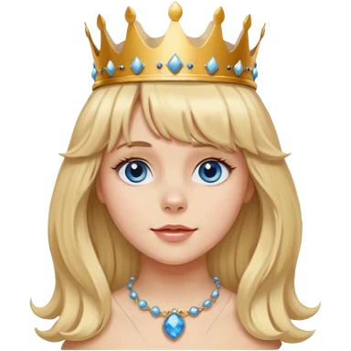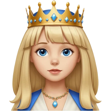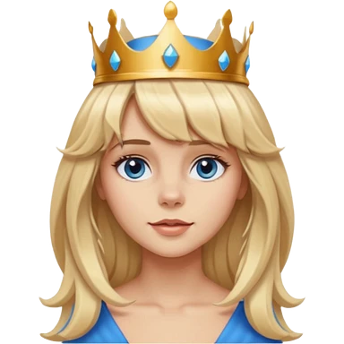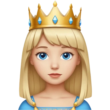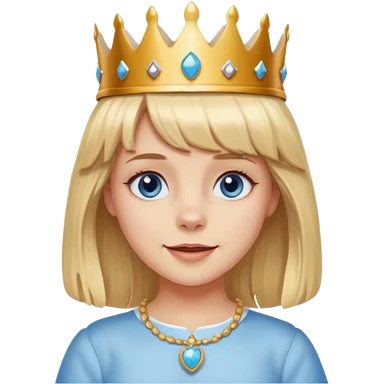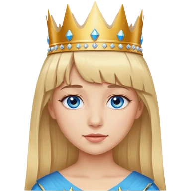 simple Blonde girl with bangs and blue eyes, and a simple crown emoji