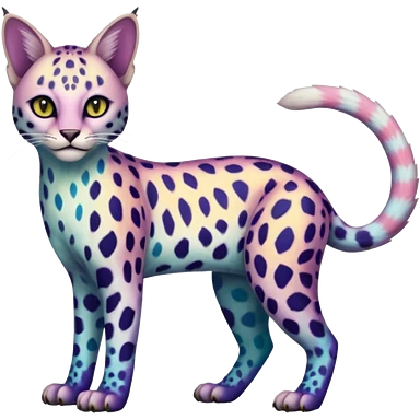 Colorful Iridescent Albino Melanistic Bobcat-Caracal-Leopard-Genet-Pokémon-Digimon-Fakémon-fusion-hybrid-creature emoji