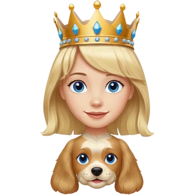 simple Blonde girl with bangs and blue eyes, and a simple crown. giving cockerspaniel energy emoji