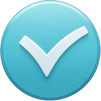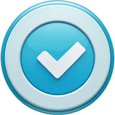 Modern emoji-style verified icon: cyan-blue circular badge, bold white checkmark, smooth gradient, soft glossy highlights, subtle shine, thick white border, minimalist flat + semi-3D style, smooth edges, high contrast, transparent PNG, high quality, sharp. emoji