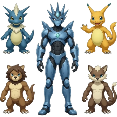 Heliolisk-Sergal-Cyclizar-Guilmon-Protogen-Wickerbeast-grem2-Genesect-Pokémon, full body emoji