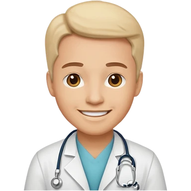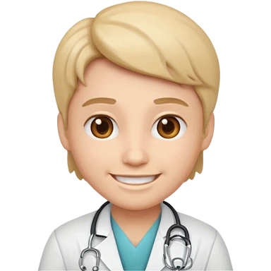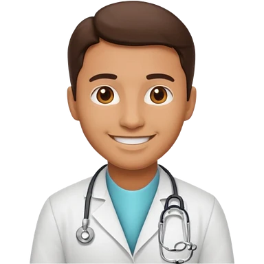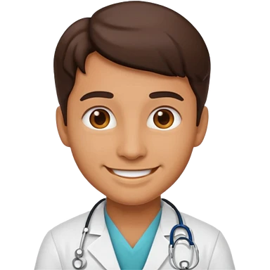 a young asian chubby male doctor with very black long curly hair and cheerful face without gpasses emoji