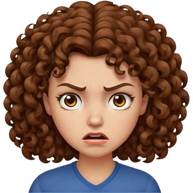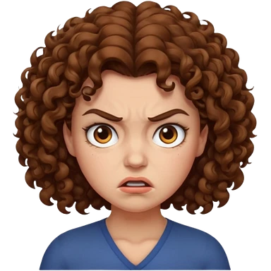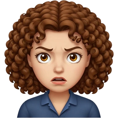 cute girl with not volominous VERY LONG curly/wavy brunette hair with balayage, brown eyes, full lips, cute makeup and hoop earrings white girl: ANGRY FACE emoji