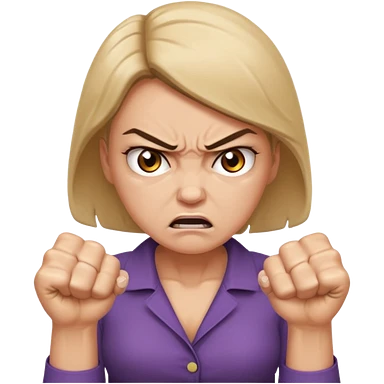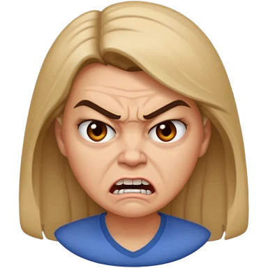pretty woman with very long brown hair and green eyes and light pink outfit angry emoji