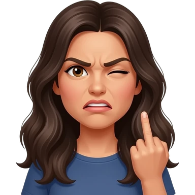 Very Angry pretty latina cussing with long hair and sticking up her middle finger emoji | AI Emoji Generator