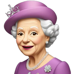 Queen Elizabeth II emoji, wearing a crown and pearls, smiling emoji