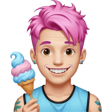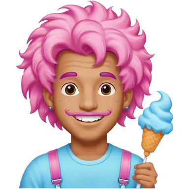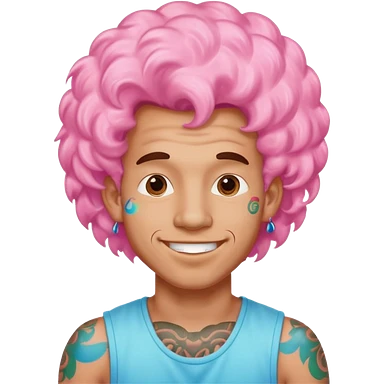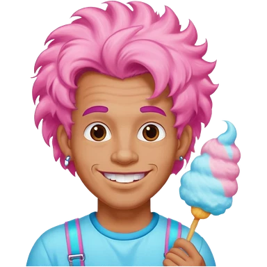 happy colorful haired man made out of cotton candy with braces and tattoos and just face not holding anything emoji