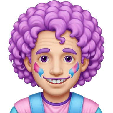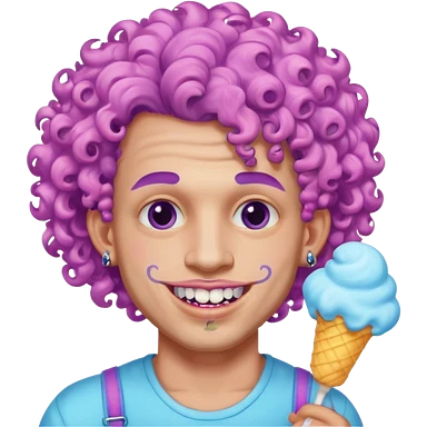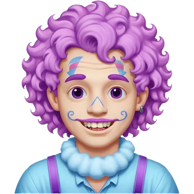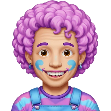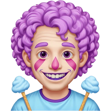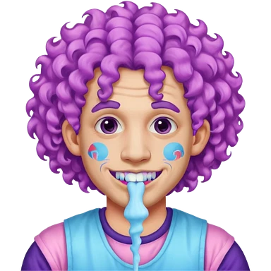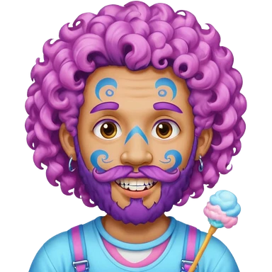very colorful puffy violet curly haired man just beard no mustache made out of cotton candy wearing teeth-braces and excessive face tattoos just face emoji