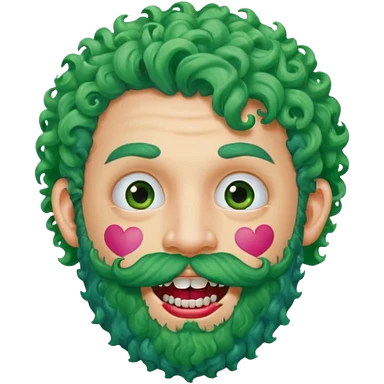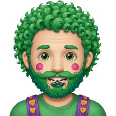 very colorful puffy green curly haired man just beard no mustache made out of candy wearing teeth-braces and excessive face tattoos just face emoji
