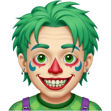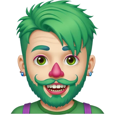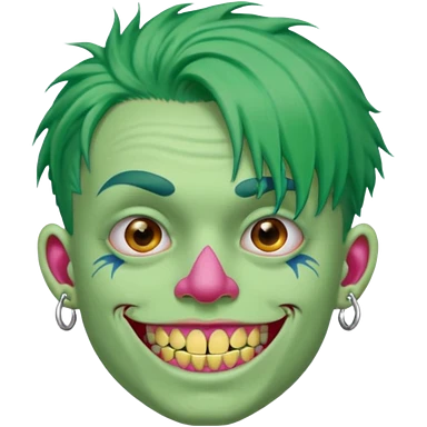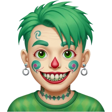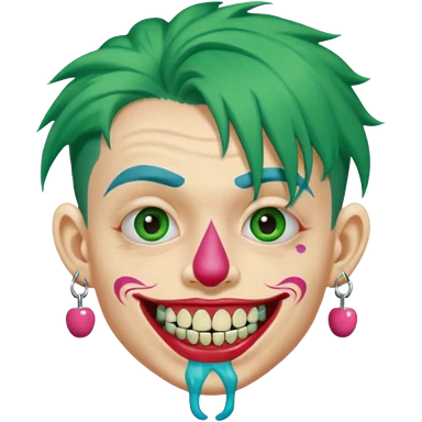 very colorful puffy green haired man made out of candy and excessive face tattoos and excessive piercing just face emoji | AI Emoji Generator