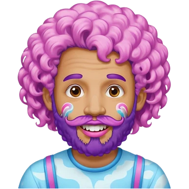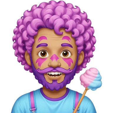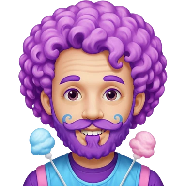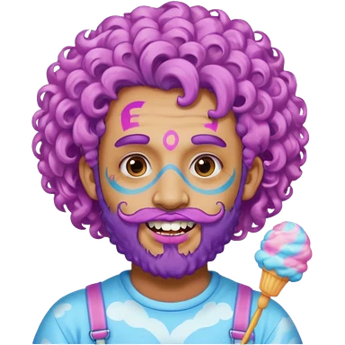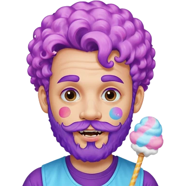 very colorful puffy violet curly haired man beard made out of cotton candy wearing teeth-braces and excessive face tattoos just face emoji
