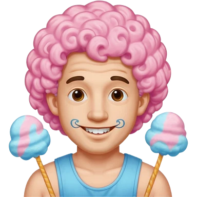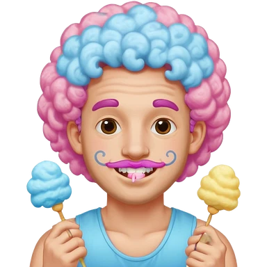 happy colorful puffy haired man made out of cotton candy with braces and tattoos and just face not holding anything emoji