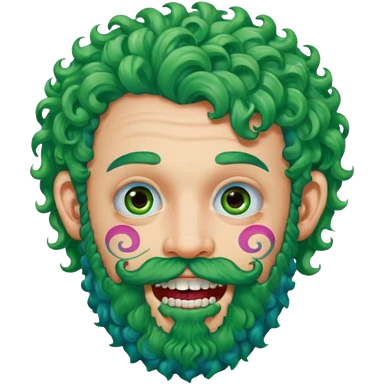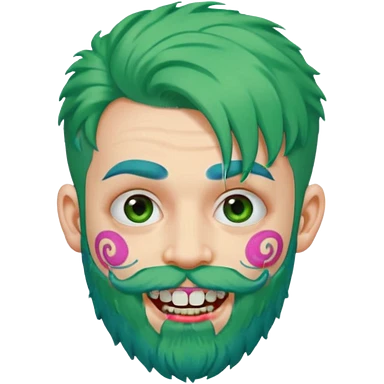 very colorful puffy green haired man just beard no mustache made out of candy wearing teeth-braces and excessive face tattoos just face emoji