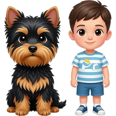 same picture but the dog is a Yorkshire full black and the little girl has boy haircut emoji