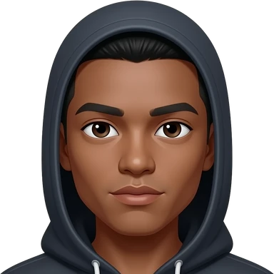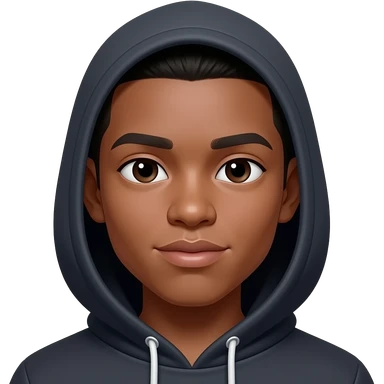 very dark skin, super hooded asain eyes, male, staight fade haircut, thick lips, soft flat nose, teenager emoji