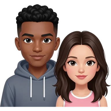 very dark skin, super hooded asain eyes, male, staight fade haircut, thick lips, soft flat nose, teenager, add a girl next to him make the girl,very tan with wavy hair and hazle eyes, make her tanner emoji | AI Emoji Generator