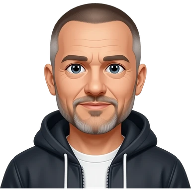 very entellectual man, 59 years old, street wear stubble, shaved short with clippers, but not bald emoji