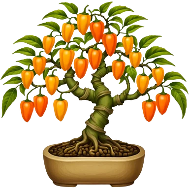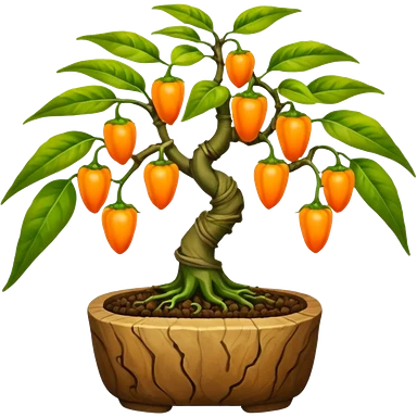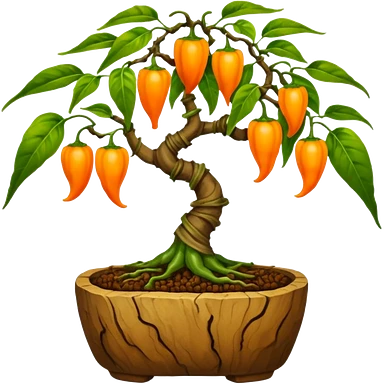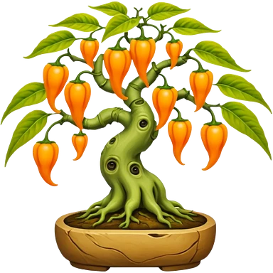Very Large decorative gnarled alien-futuristic multi-tier space-efficient seeding plant rack, which holds tiny hot pepper plants, constructed from mud and coconut fiber matrix emoji | AI Emoji Generator