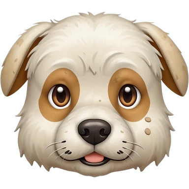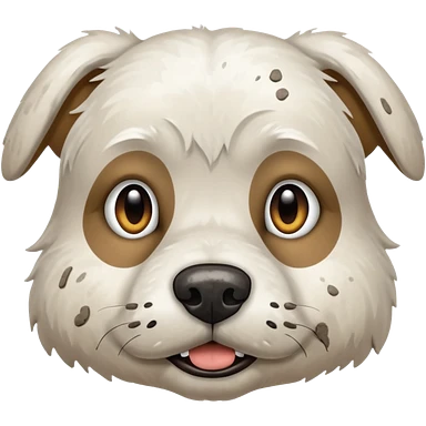 very muddy and dirty white dog face emoji | AI Emoji Generator