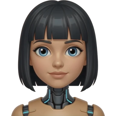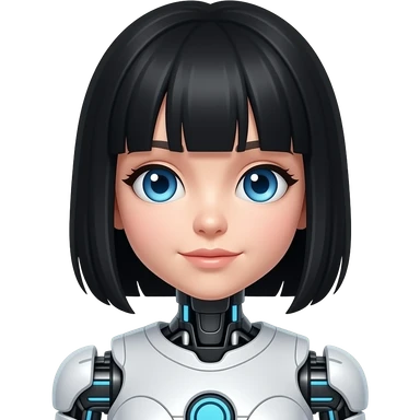 very pretty robot girl with blu eyes and black hair with bangs emoji