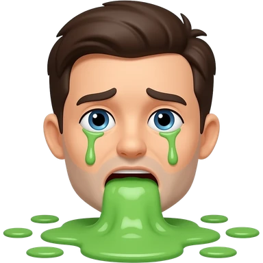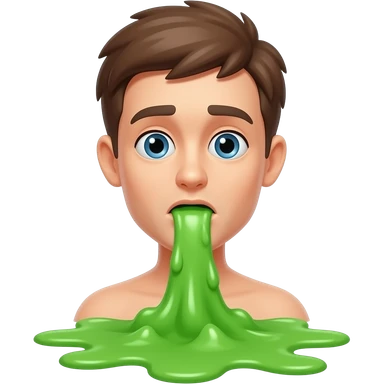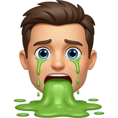 Brunette woman, long hair, and glasses that’s very nauseous and feeling sick emoji