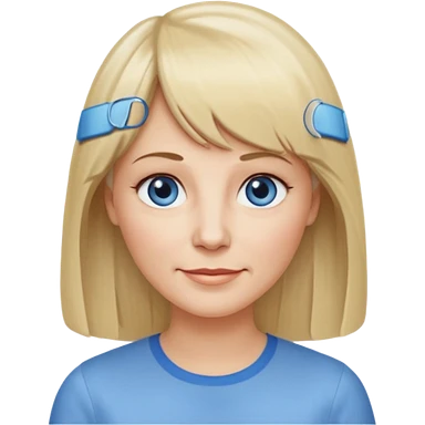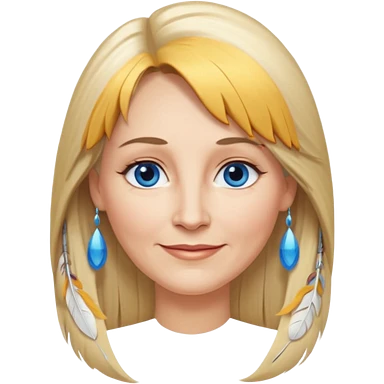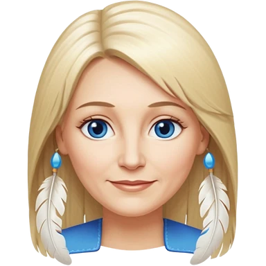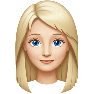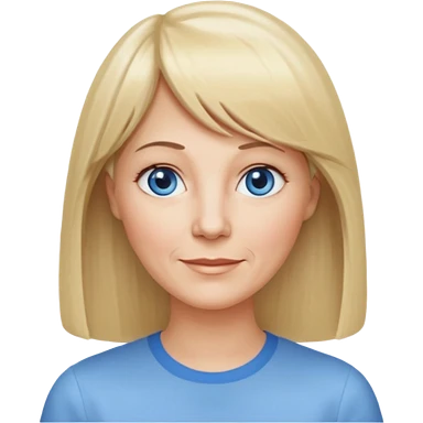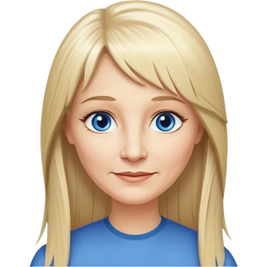 Very white woman, with blue/grey eyes, straight brown hair that is a little bit blonde and the tips are curly, cute white outfit, star neckless emoji | AI Emoji Generator