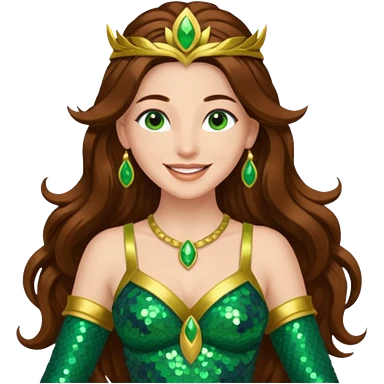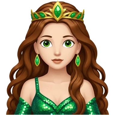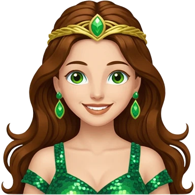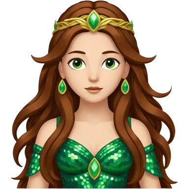 Terra, Goddess of Earth from Gods and Goddesses with long brown hair, green sequin outfit emoji
