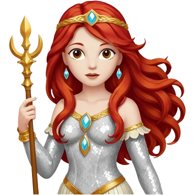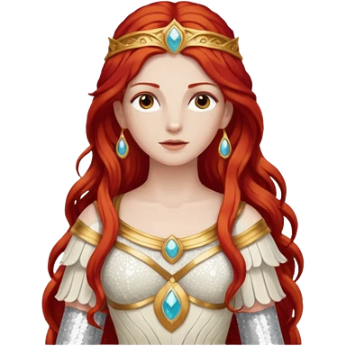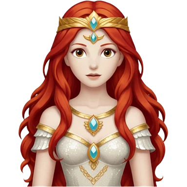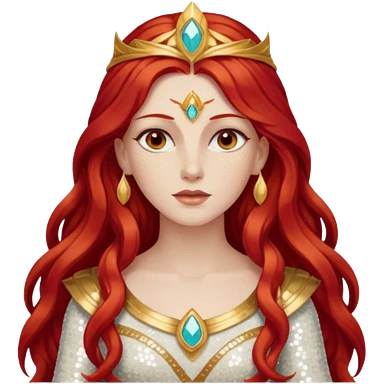 Minerva, Goddess of Wisdom from Gods and Goddesses with long red hair, ivory sequin outfit emoji