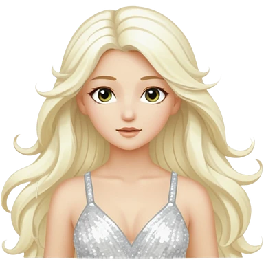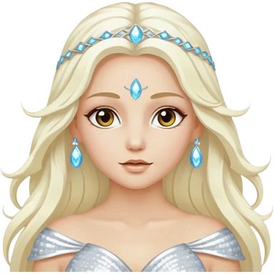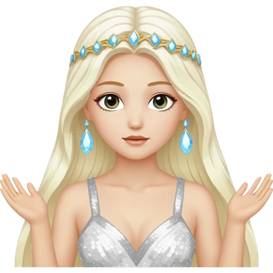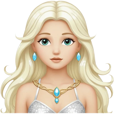 Aura, Goddess of Breeze from Gods and Goddesses with long platinum blonde hair, white sequin outfit emoji
