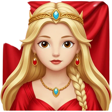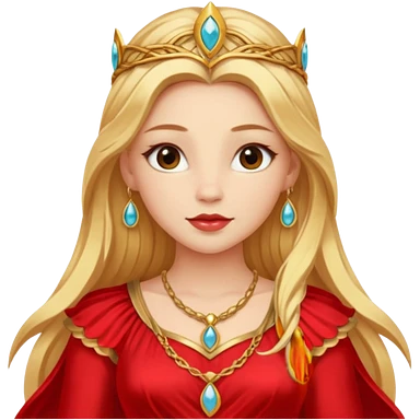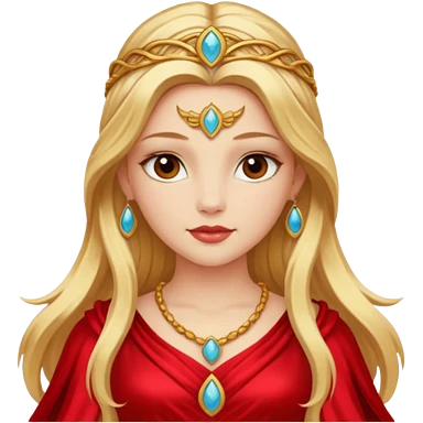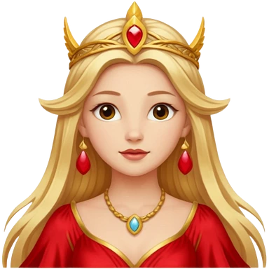 Freya, Goddess of Love from Gods and Goddesses with long golden blonde hair, red outfit emoji