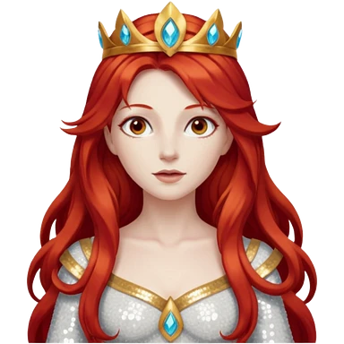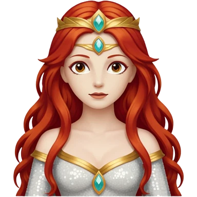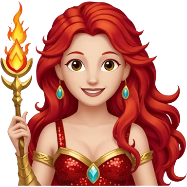 Vesta, Goddess of Hearth from Gods and Goddesses with long red hair, red sequin outfit emoji | AI Emoji Generator