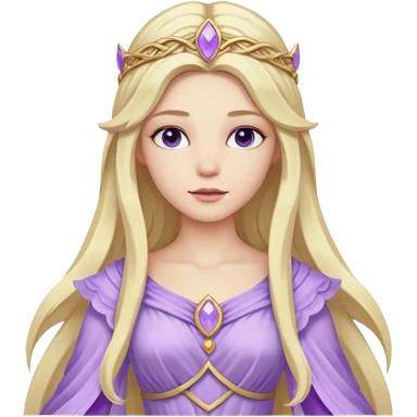 Freya, Goddess of Love from Gods and Goddesses with long blonde hair, lilac outfit emoji
