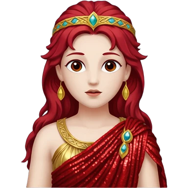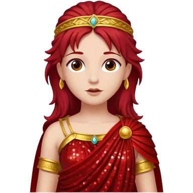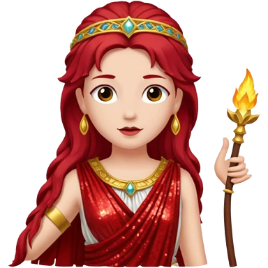 Vesta, Goddess of Hearth from Roman Deities with long dark red wavy hair, red sequin toga emoji | AI Emoji Generator
