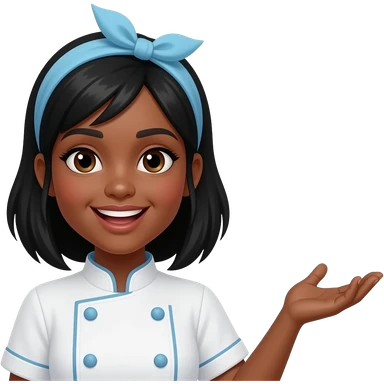 chica morocha con rulos negros y vestida de pastelera emoji