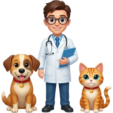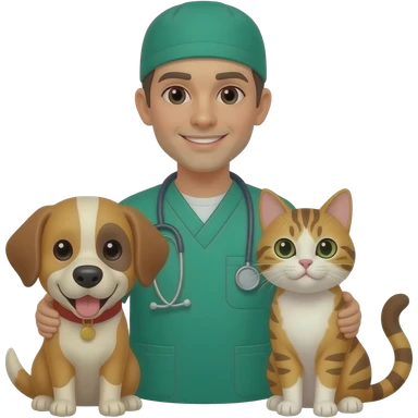 black hair vet with cat and dog emoji
