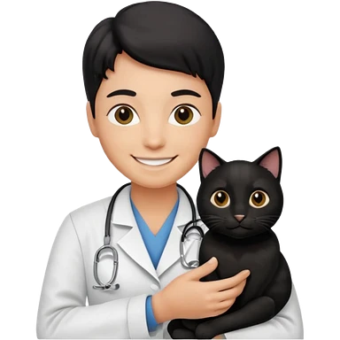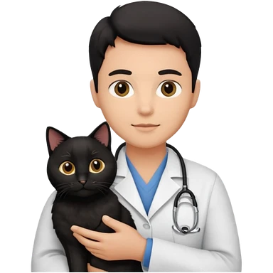 Veterinario hombre trigueño con lentes, con cabello negro y un gato naranja emoji
