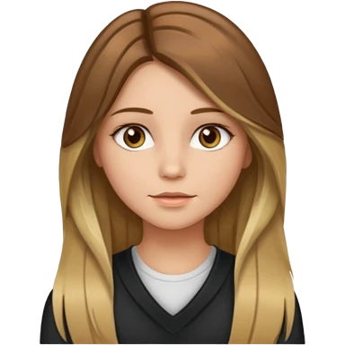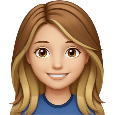 make a girl with long brown hair with blond highlights and layers with hazel eyes middle part emoji