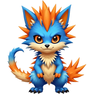Vibrant colorful-gradient anime-styled edgy cool badass cute random Fakémon-creature, with random markings, full body emoji