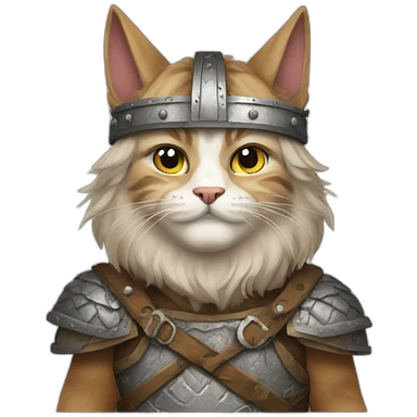 valorous Viking cat in Valhalla, surrounded by Norse symbols emoji