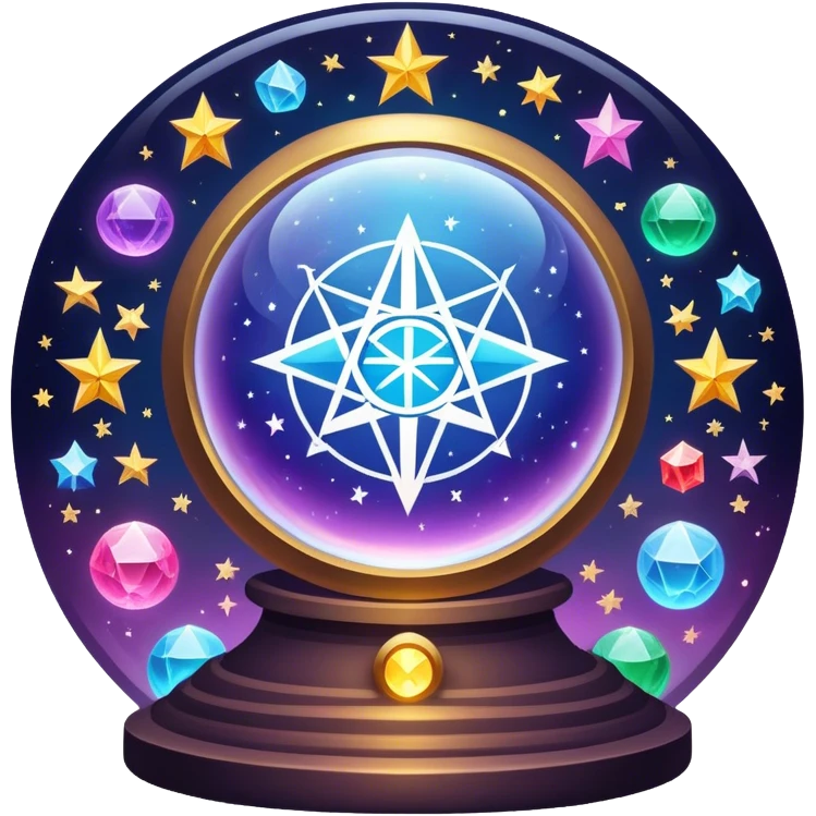 vibrant and mystical icon representing divination and esotericism. The icon should feature symbols like a crystal ball, tarot cards, or mystical runes, with glowing effects, stars, and a magical atmosphere. The design should be colorful, magical, and evoke a sense of mystery and spirituality.emoji