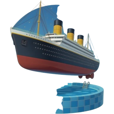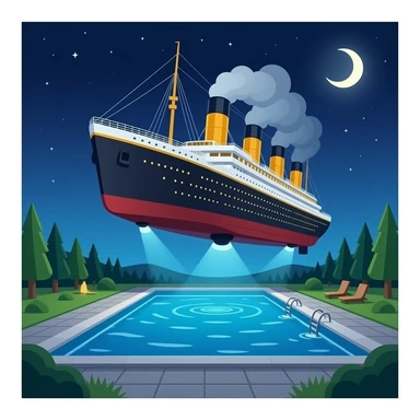 the ship Titanic hovers in the night sky above a pool of water emoji