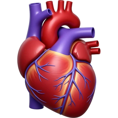 Vibrant 3D anatomical heart, realistic but stylized, deep ruby red and violet, soft studio lighting, medical illustration style. emoji