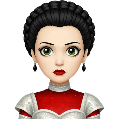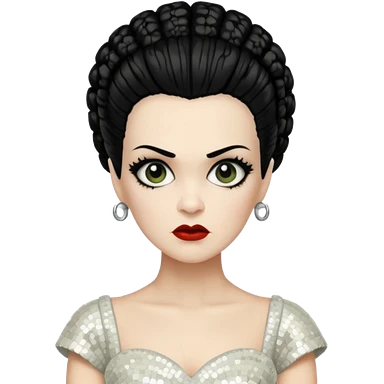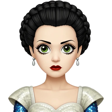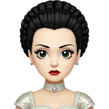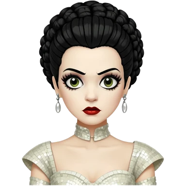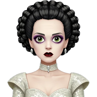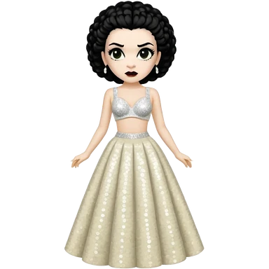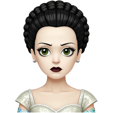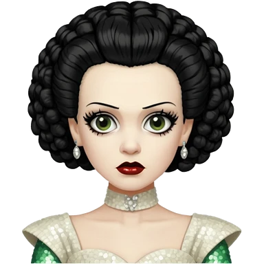Bride of Frankenstein with black hair, ivory sequin outfit emoji