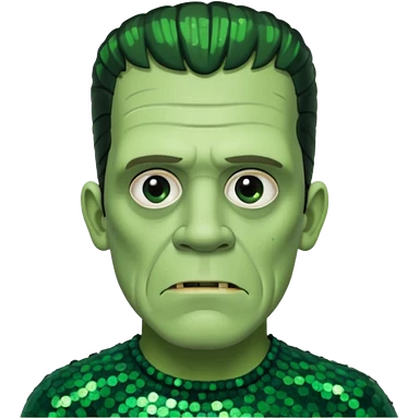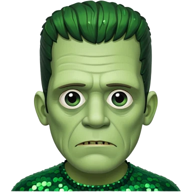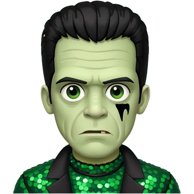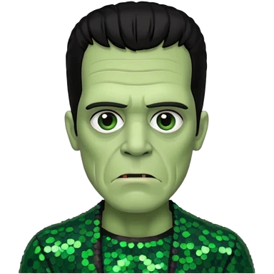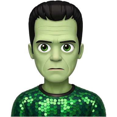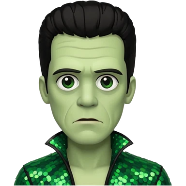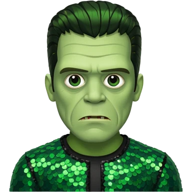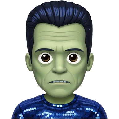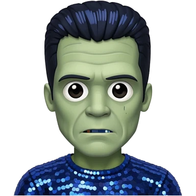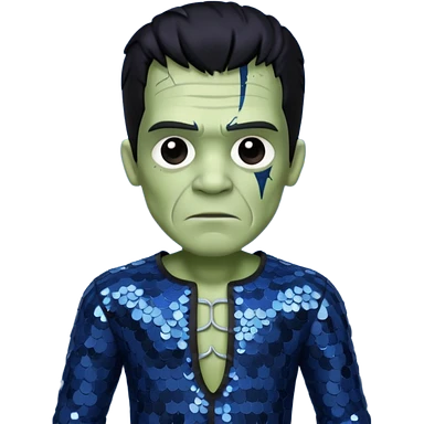 Frankenstein from Van Helsing with black hair, grey skin dark blue sequin outfit emoji