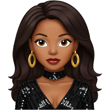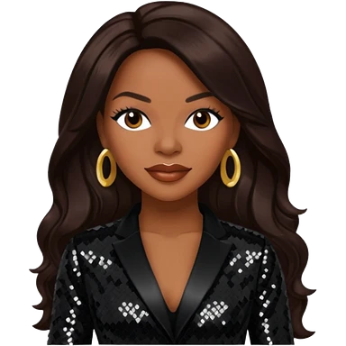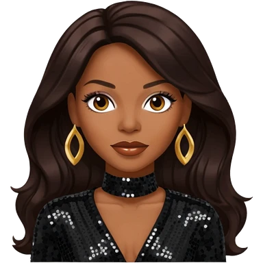 Dawn Robinson from En Vogue with long dark brown hair, black sequin outfit emoji
