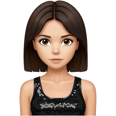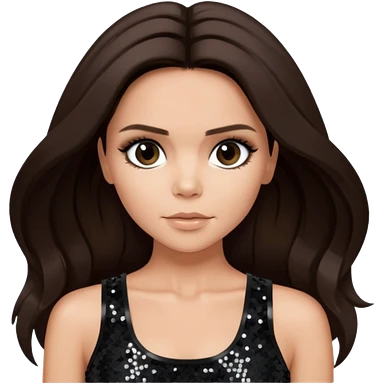 Victoria Beckham with dark brown hair, black sequin crop top emoji