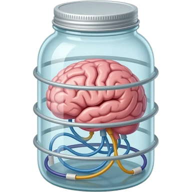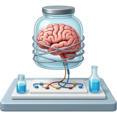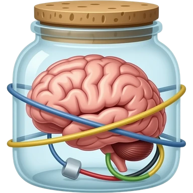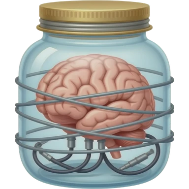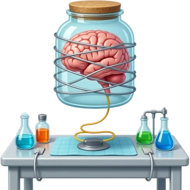 a brain placed in medical preparations that is connected to an electrical circuit, a glass jar wrapped in high-voltage wires emoji